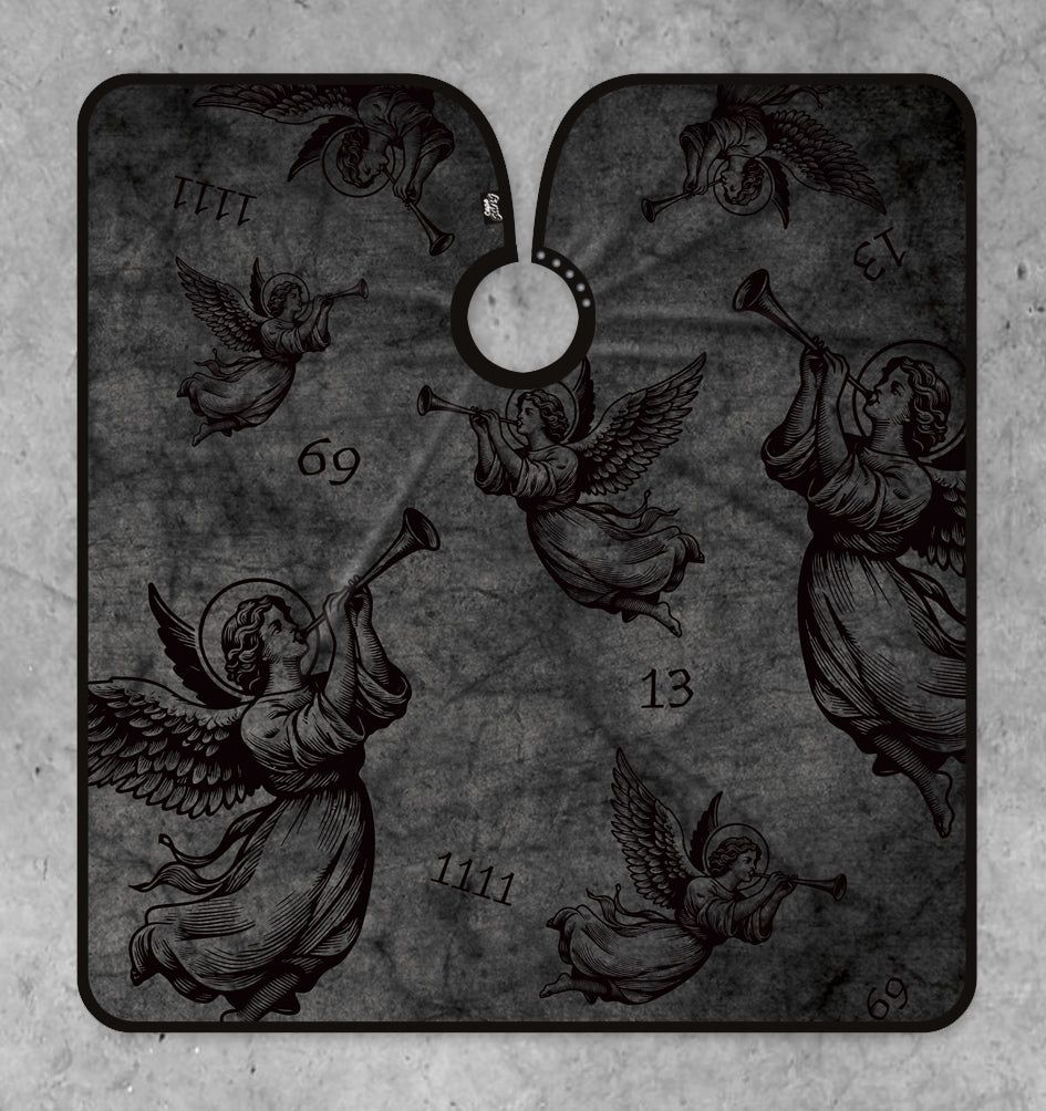 Elevate your craft with our Angel barber cape, a unique fusion of symbolism, style and performance. Featuring celestial angels and powerful angel numbers, this cape brings a spiritual touch to your station. A reminder of protection and creativity with every cut.
