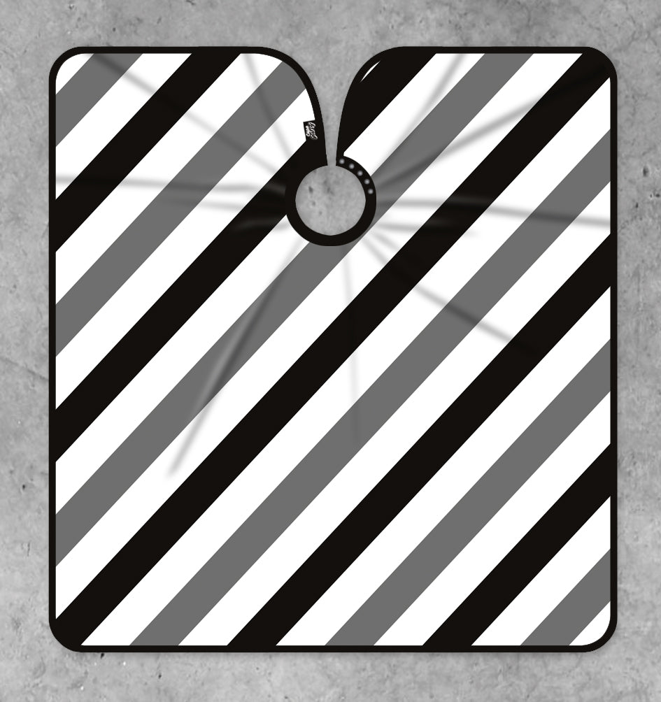 Put a contemporary spin on a timeless symbol with out grey & black Barber pole cape. Inspired by the iconic barber pole, this cape swaps traditional red white and blue for bold grey white and black stripes, giving your station a sleek, modern edge while maintaining classic barber heritage.